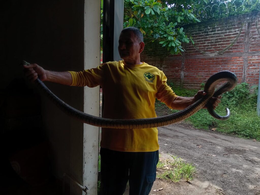 Comandos de Salvamento de Jucuapa advirtió que, por desconocimiento y miedo, muchas personas optan por matar a estos reptiles, lo que afecta negativamente al medio ambiente. En lugar de hacerlo, recomiendan contactar a las autoridades para que realicen la captura y reubicación del animal de manera segura.